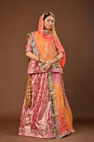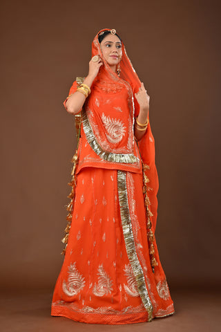 Orange Traditional Rajputi Poshak in Pure Georgette with Jamdani Aari Pittan Work