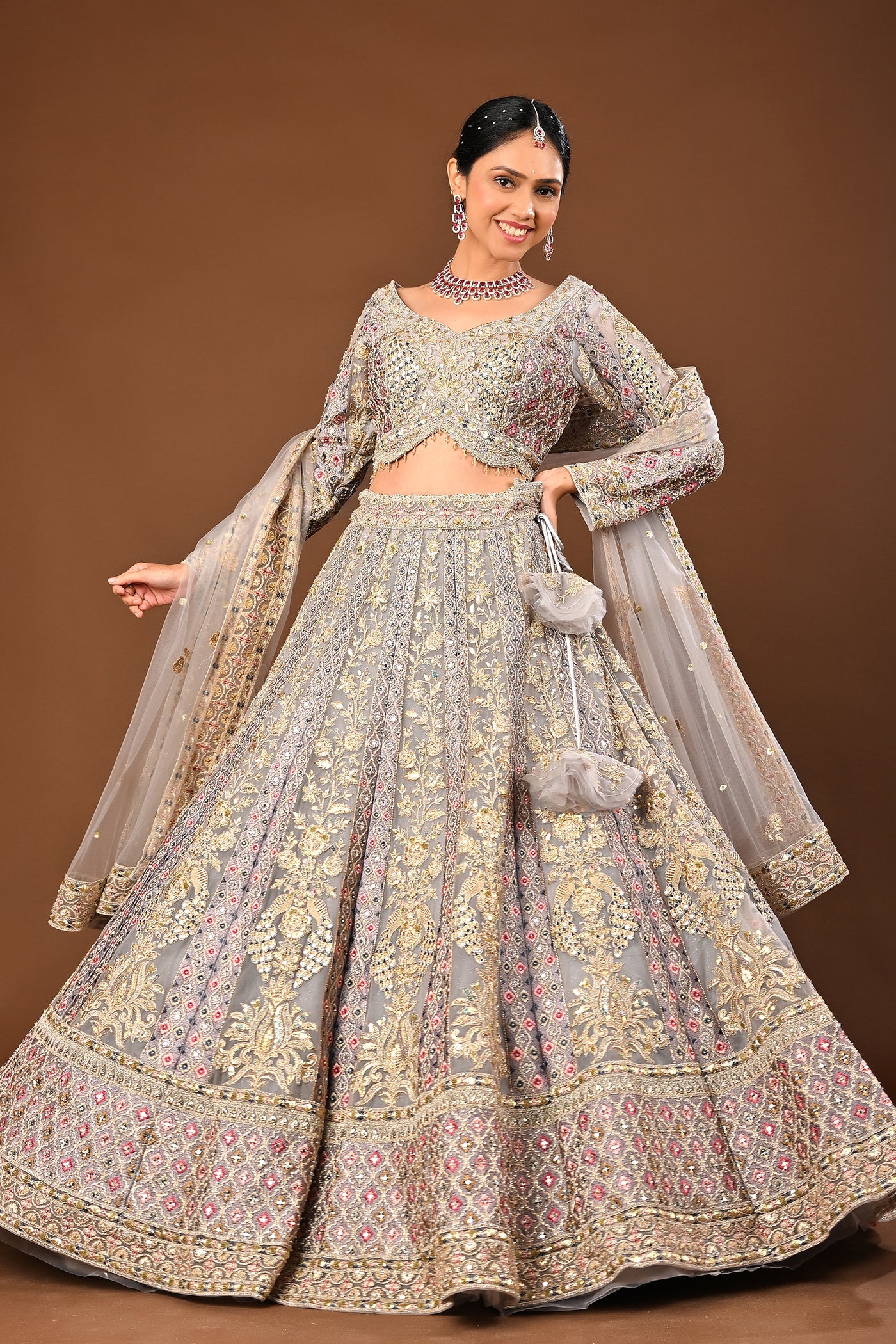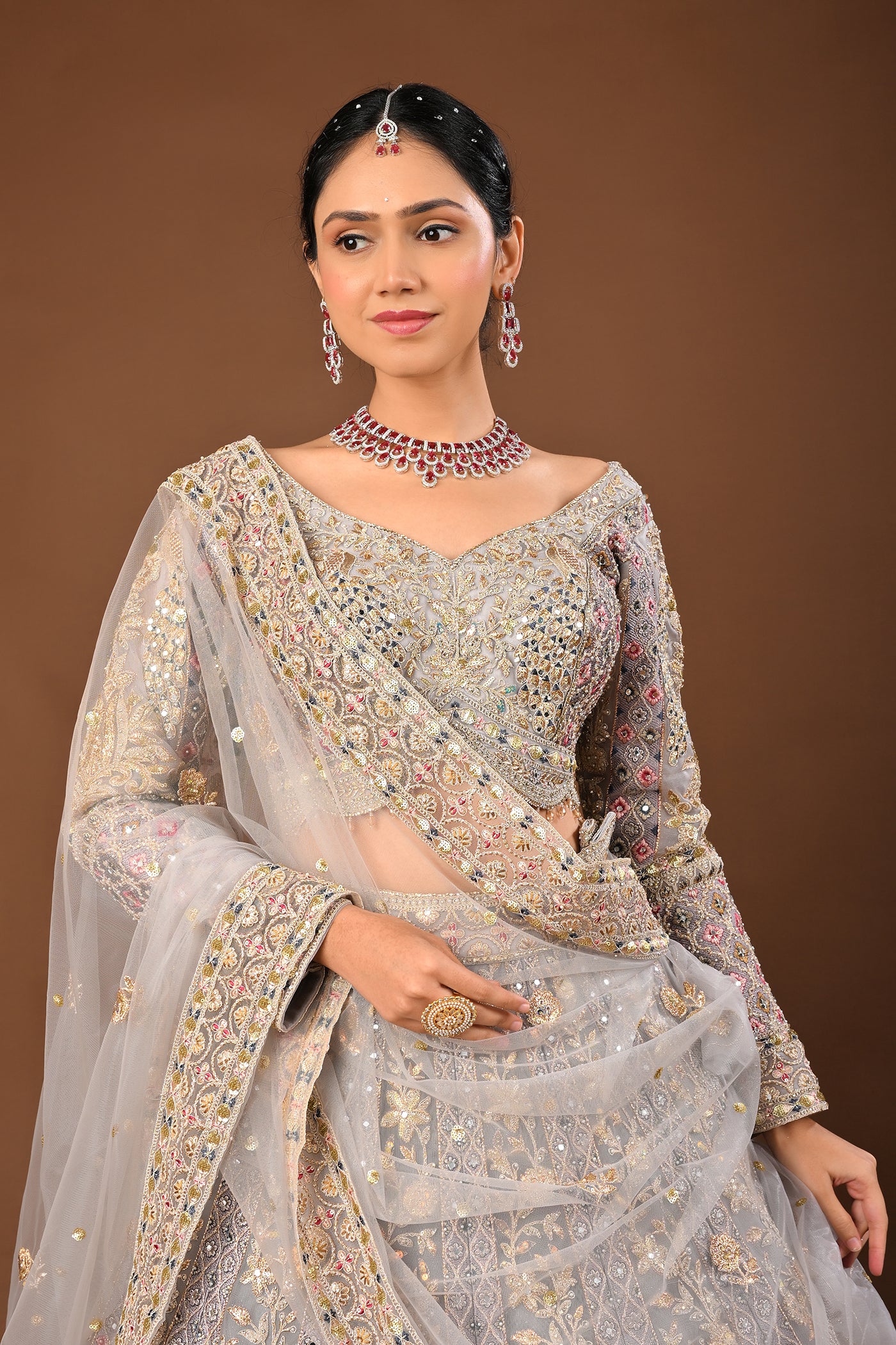 Crafted in lightweight and fluid, the lehenga in warm Coffee Brown highlights Cutdana with Sequins work. Designed to make a statement at receptions, sangeet and evening celebrations.