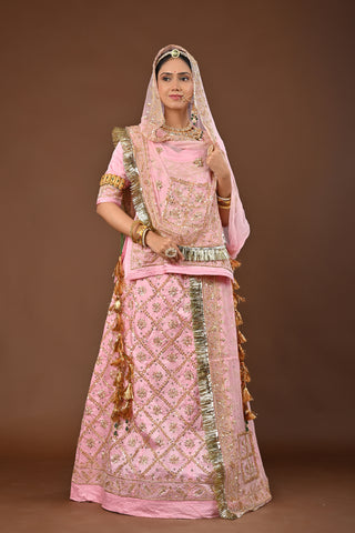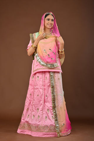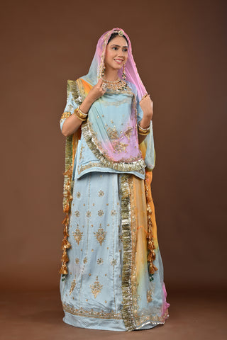 Multi Shaded Odhna Traditional Rajputi Poshak in Pure Georgette with Kundan Gota Patti Work