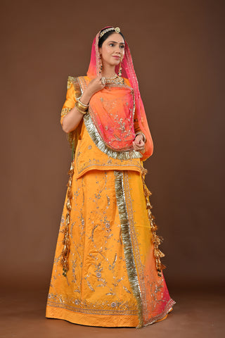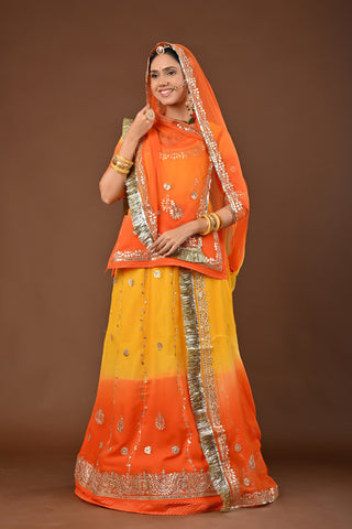 Yellow Orange Shaded Rajputi Poshak with Zero Gota Patti in Pure Georgette