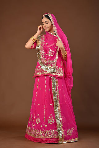 Rani Traditional Rajputi Poshak in Faux Georgette with Gota Patti with kundan Work