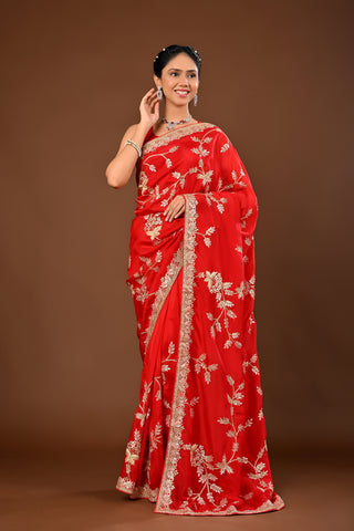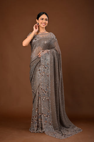 Teal Blue Saree crafted in Imported Lycra with Patch with Cutdana and Sequins with