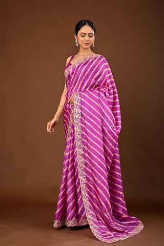Megenta and Peach Color Saree in Tussar silk featuring Lehariya Saree with Marodi,