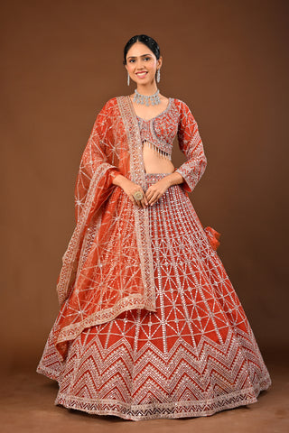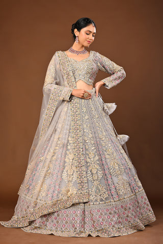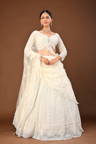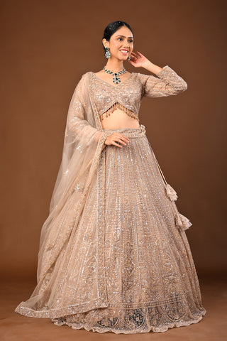 Golden Brown skin tone / beige Lehenga crafted in Soft Net with Hand Pearl with Cutdana