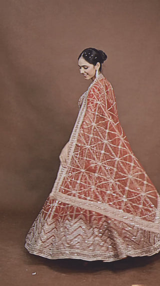 Celebrating craftsmanship, the Vibrant/Fanta orange lehenga in soft net presents Mirror work. Style it for weddings and festive functions.
