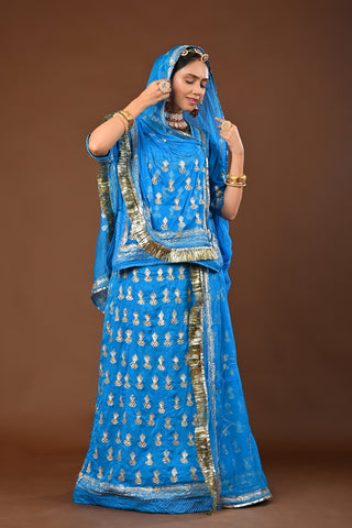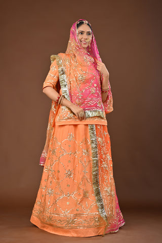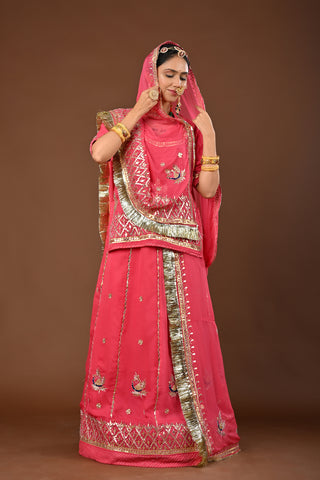 Multi Shaded Odhna Traditional Rajputi Poshak in Pure Georgette with Charkhi Gota with tiki Work