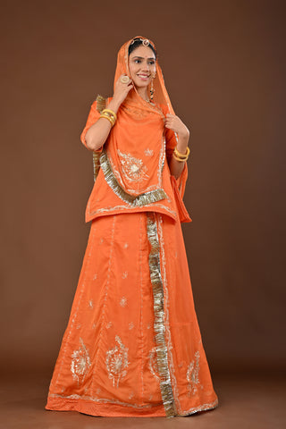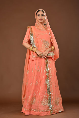 Peach Faux Georgette Rajputi Poshak featuring Aari Pittan with kasab Embroidery