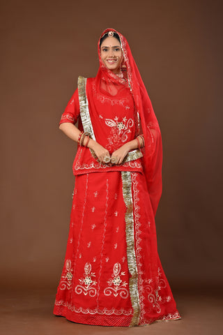 Red Traditional Rajputi Poshak in Faux Georgette with Aari Pittan with kasab Work
