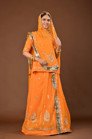 Yellow Traditional Rajputi Poshak in Pure Georgette with Gota Patti with kundan Work