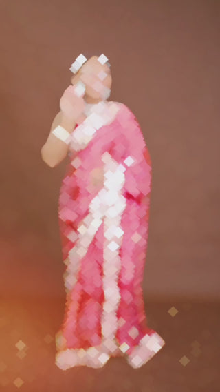 Light as air, this chinnon saree in regal Red is elevated by Bandhej Saree with Gota Patti border with peacock motifs. A modern classic for weddings and festive functions.
