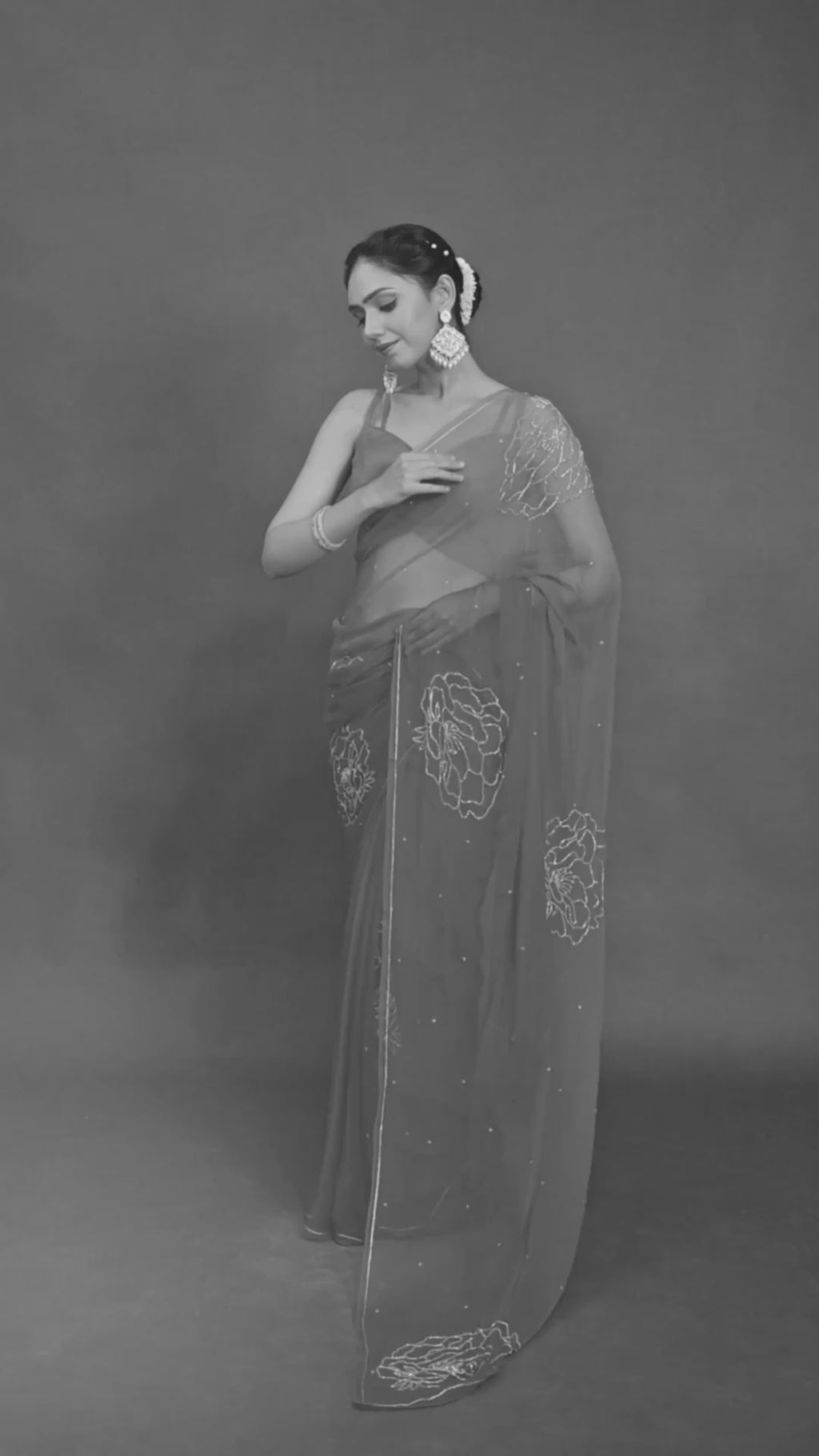 Designed for sophistication, this shaded orange chiffon saree showcases Cutdana Boota. Perfect for Party wear, offering grace and comfort in every drape. A designer piece that elevates every special occasion effortlessly.