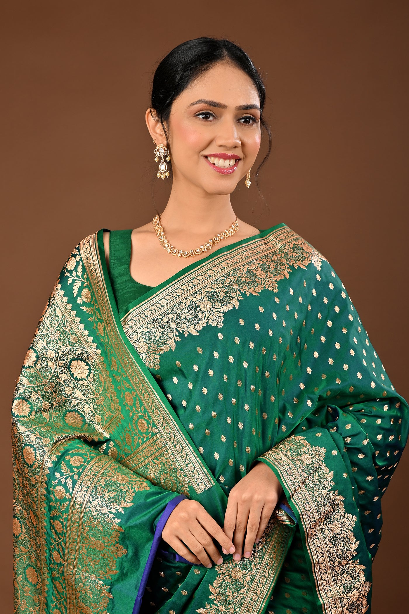 Two tone - Green - blue Banarasi Silk Saree: Silk Saree with Traditional Banarasi Weave