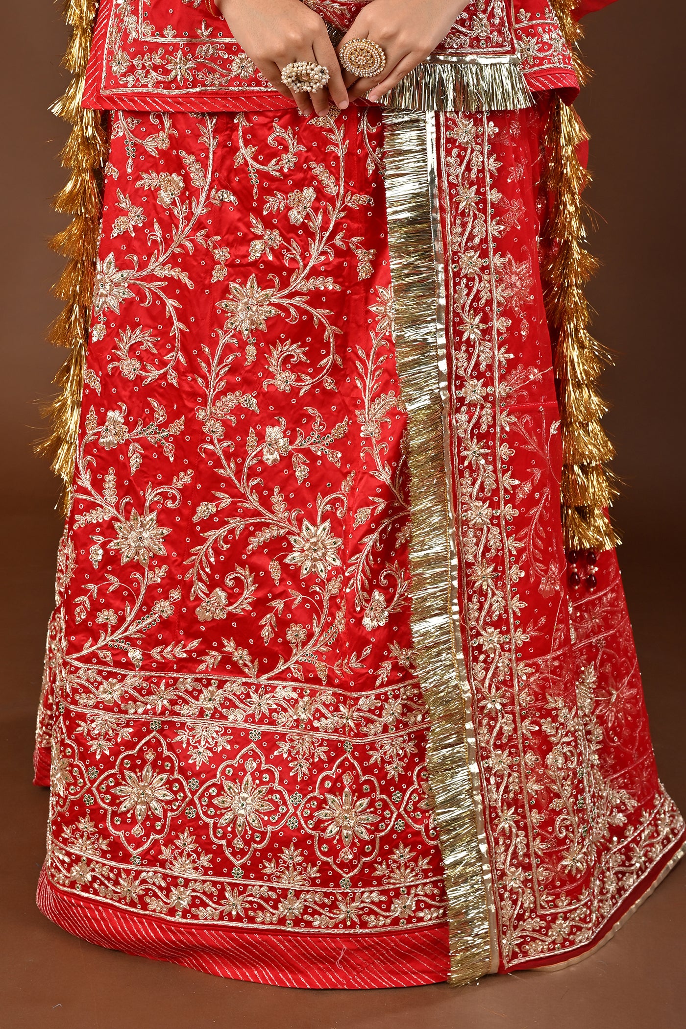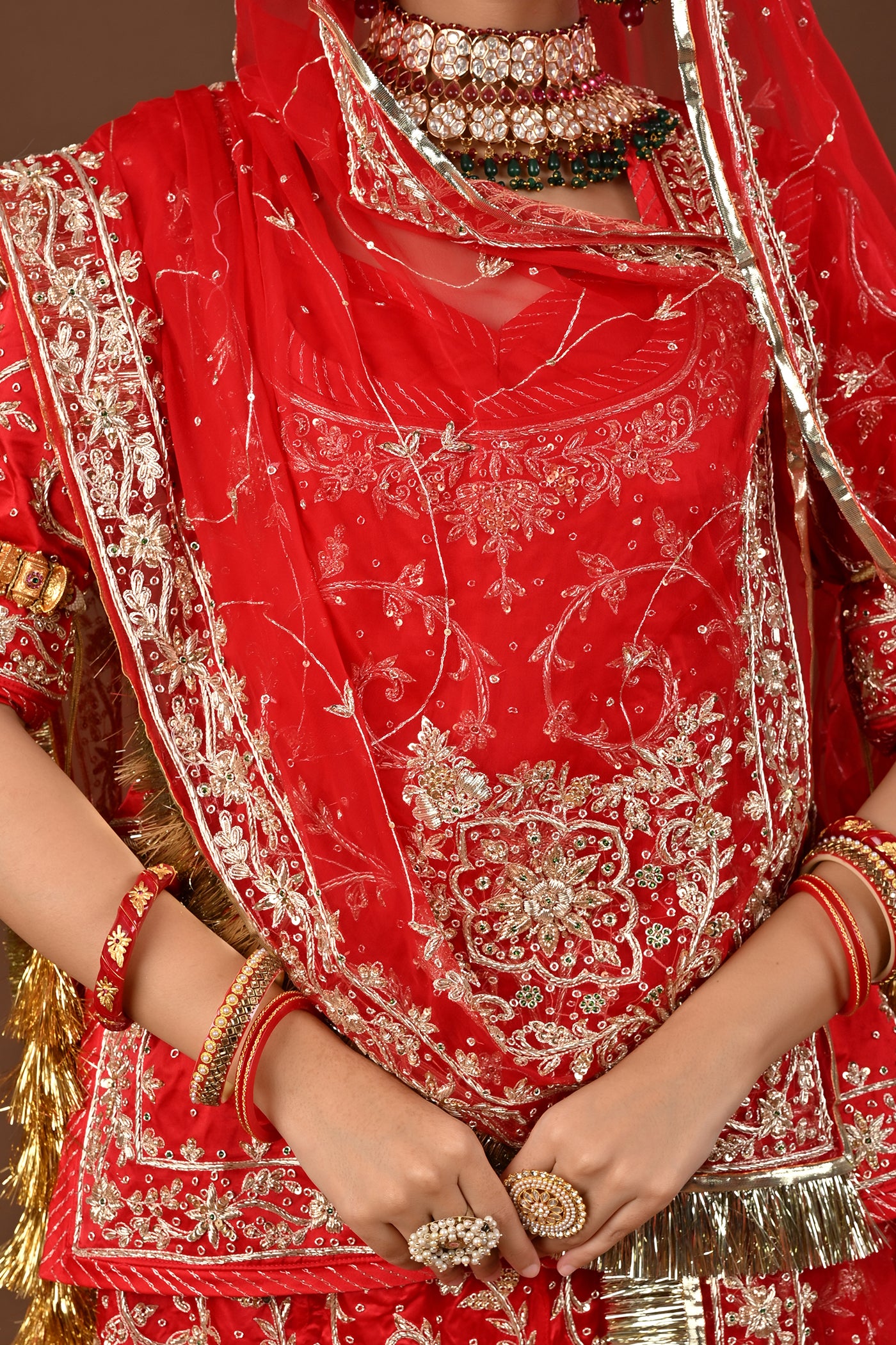 Red Rajputi Poshak with Zardozi in Pure Georgette
